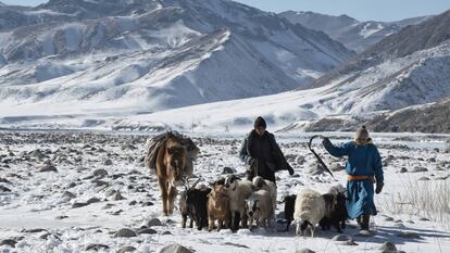 “Ahora mismo, es mucho más rentable criar cabras para obtener el cachemir que hacerlo para ordeñarlas o para venderlas como carne”, explica Hairathan Sernehan, un pastor de la provincia occidental de Bayan-Ulgii que cuenta con un rebaño de 500 cabras y ovejas. “Puedo vender un kilo de cachemir por unos 120.000 tugrik (40 euros), mientras que por una cabra entera a duras penas me pagarán el doble de esa cantidad”, añade. En total, se estima que Mongolia es el hogar de 66 millones de cabezas de ganado —22 veces la población humana— que convierten al país en el primer productor de fibra animal del planeta —un 42% del total—. Unos 27 millones de esos animales son cabras, que tienen capacidad para producir un máximo de 9.400 toneladas de cachemir al año, en torno al 40% del total mundial.