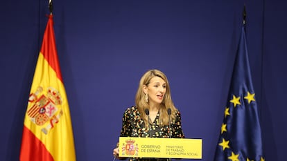 Ha costado casi cinco meses pactar apenas un folio con un solo artículo y dos disposiciones adicionales. En este tiempo, el acuerdo se ha acariciado varias veces... así como la ruptura. Un ejemplo es lo sucedido hace semanas, tras la última reunión oficial para abordar el tema. La CEOE aceptó trasladar al texto legal el fallo del Supremo que en septiembre declaraba asalariados a los repartidores de Glovo y el pacto parecía inminente, cuestión de días. Pero ha tardado casi un mes más. Algunos negociadores que han estado en todas las conversaciones —diferentes tandas de ERTE, teletrabajo— afirman que esta ha sido la ronda más difícil. En eso también han tenido que ver las tensiones internas en dos de los tres lados de la mesa: el Gobierno, en un nuevo capítulo de la habitual pugna entre Trabajo y Economía, y en la CEOE, donde ni siquiera las propias plataformas de reparto mantenían una posición única.