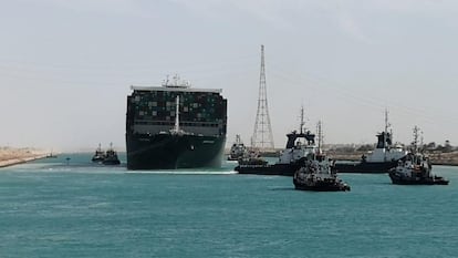 El bloqueo del canal de Suez representaba una amenaza de primer orden para las cadenas de suministro del comercio global. A lo largo de los 190 kilómetros de esta vía navegable, que conecta el mar Rojo con el Mediterráneo, fluye poco más del 10% del comercio mundial, según estimaciones de la Autoridad del Canal de Suez. Es una de las vías más importantes del planeta en el transporte de gas, petróleo y mercancías en contenedores. El tráfico marítimo diario por el canal tiene un valor de unos 8.150 millones de euros, según un primer cálculo de la empresa de información sobre comercio marítimo Lloyd’s List. La infraestructura también representa para Egipto una de sus principales fuentes de divisas extranjeras.