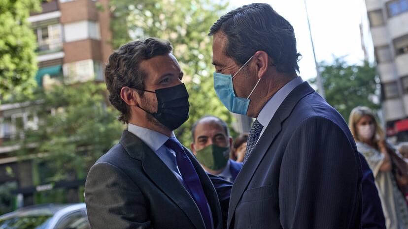 Casado y Garamendi han escenificado unidad tras su distanciamiento de las últimas semanas, aunque ha sido el líder de la CEOE quien más ha puesto la otra mejilla. La imagen era el mensaje, con los dos sentados en la misma mesa, codo con codo, junto a Lorenzo Amor, presidente de los autónomos. El líder del PP ha querido evidenciar con esa imagen que no tiene un problema con los empresarios, después de un inédito y sorprendente choque con sus aliados naturales, incluida la Iglesia.
