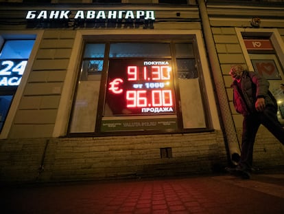 Las circunstancias difieren frente a una crisis tradicional. El país cuenta con recursos suficientes para satisfacer la factura, que en un entorno normal no plantearía ninguna dificultad. Pero la congelación de casi la mitad de sus reservas en moneda extranjera —300.000 de los 643.000 millones de dólares—, le ha privado de acceso a la divisa estadounidense. El ministro de Finanzas ruso, Anton Siluanov, ha afirmado este miércoles que han dado la instrucción de pago habitual al banco estadounidense con el que suele realizar estas transacciones, pero que no tienen la certeza de que la operación vaya a ser aprobada debido a que sus reservas están bloqueadas. Hasta el último momento, el Kremlin confía en sortear el impago utilizando rublos como alternativa. Sin embargo, los dos cupones que vencen hoy, de 73 millones y 44 millones de dólares, no permiten esa alternativa, y Fitch ha avisado de que usar moneda local equivale a entrar en suspensión de pagos. Solo en lo que queda de mes, Rusia debe devolver otros 614 millones de dólares, y en abril tiene compromisos aún mayores, superiores a los 2.000 millones.
