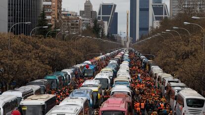 La convocatoria, con el lema Juntos por el campo, ha sido multitudinaria. Los organizadores habían previsto la asistencia de unos 200.000 agricultores, ganaderos, pescadores, cazadores o criadores de toros llegados de toda España. Y dicen haber superado sus previsiones, aunque la Delegación del Gobierno cifra la participación en unas 150.000 personas. En cualquier caso, fue una de las mayores movilizaciones del campo, solo por detrás de los 500.000 asistentes estimados en la llamada “Marcha Verde” de los años noventa. La manifestación, en la que han podido verse más de un centenar de tractores, carruajes de caballos, perros de caza, burros o carneros, ha transcurrido de forma festiva desde la sede del Ministerio de Agricultura, en la glorieta de Atocha, hasta la sede del Ministerio de Transición Ecológica y Reto Demográfico, en la Plaza de San Juan de la Cruz, donde se ha puesto fin a la convocatoria.