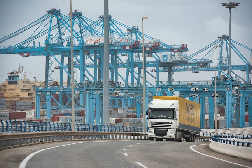 La infraestructura gaditana es la más importante del Mediterráneo en el movimiento de cargas, gracias al transbordo de barco a barco. De los cinco millones de contenedores que movieron el pasado año, apenas 400.000 (un 8% del total) eran importaciones o exportaciones. Eso, sumado a la magnitud del puerto y la carga que viaja en tren —salen hasta cuatro al día— le ha evitado falta de espacio o desvíos de buques, pese a que fuentes de la Autoridad Portuaria apuntan a que en estos días los camiones salen “a cuentagotas”. Algeciras también es conocido por ser el que más puestos de carga eléctrica tiene de los puertos españoles: hasta 5.500 para contenedores refrigerados de perecederos, como los que precisa la fruta de Aroca. Y, tras diez días de paro, es justo ahí donde el cuello de botella hace mella, según sostiene Antonio Perea, gerente de la empresa de transitarios Algetransit: “Vivimos en calma tensa porque faltan camiones. Tengo a una veintena de clientes con decenas contenedores refrigerados parados y la pérdida para ellos es grande”.
