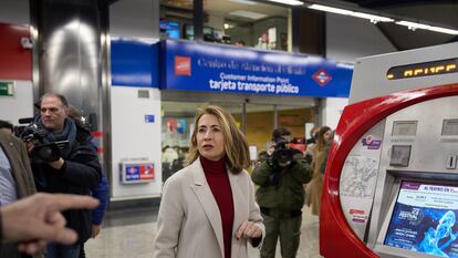 La ministra de Transportes, Raquel Sánchez, en la estación madrileña de Nuevos Ministerios, esta mañana. Foto: JESÚS HELLÍN (EUROPA PRESS) | Vídeo: Europa Press