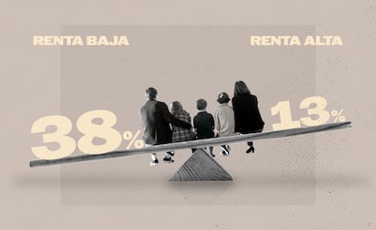 El 38% de las familias con tres menores o jóvenes dependientes tienen ingresos bajos, pero otro 13% está entre el 20% más rico