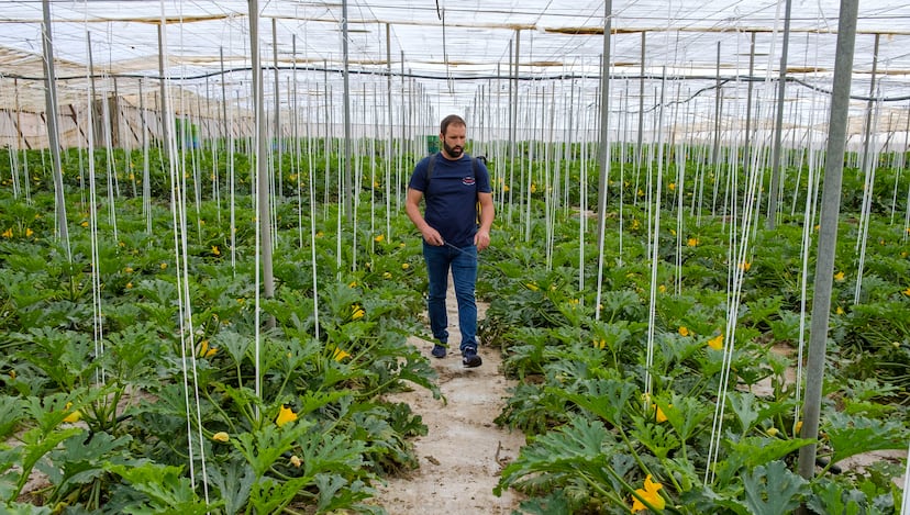 En uno de sus invernaderos, donde a las 10 de la mañana ya hace un calor inusual para la época, Moreno tiene plantados unos melones a los que les quedan “una o dos semanas”. Ahora, dice, están pagándose bien, a unos 80 céntimos, “pero habrá que ver cuando lo corte”. Como estos requieren menos mano de obra, prescinde durante esta campaña de los dos trabajadores que suele contratar en otoño, cuando planta calabacines. Todo su producto lo vende a través de la cooperativa a la que está adscrito.