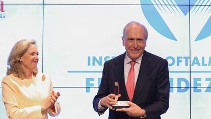 El Instituto Oftalmológico Fernández-Vega ha sido distinguido este miércoles con el premio Pyme del Año, que conceden la Cámara de Comercio de España junto con el Banco Santander y en colaboración con PRISA. En el evento, en el que ha intervenido la vicepresidenta primera del Gobierno, Nadia Calviño, se ha subrayado la labor investigadora que realiza esta empresa. Calviño ha resaltado que “la humanidad”, en este caso en el trato al paciente “es un valor que debe estar muy presenta a la hora de reconocer la excelencia en el ámbito empresarial”. La clínica oftalmológica, que destaca por el desarrollo industrial de una prótesis que ha supuesto una revolución en los trasplantes de córnea, ha sido reconocida también por su “férreo compromiso con el empleo indefinido y de calidad”. La vicepresidenta ha recordado que las pymes “son el corazón de la economía española” y ha resaltado la importancia del proceso de internacionalización para lograr que estas empresas sean más competitivas.