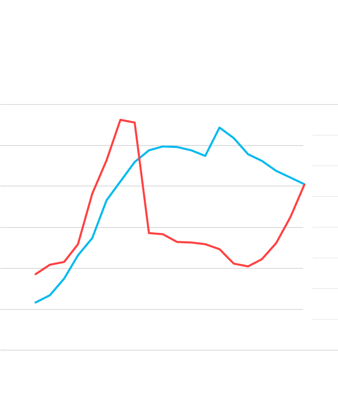 En términos de volumen, por el contrario, la deuda autonómica se mantendrá estable en su conjunto, ligeramente por encima de los 320.000 millones. De hecho, el pasivo regional y el gasto por intereses calculados como ratio sobre el PIB han seguido una evolución opuesta en los últimos años, y según el informe la brecha irá aumentando. La tasa de deuda autonómica empezó a crecer tras la Gran Recesión, alcanzó un pico con la crisis de la covid y desde entonces se ha ido reduciendo gracias al crecimiento económico, tendencia que mantendrá hasta 2026 —para entonces, habrá caído al 20,3%, desde el 23,9% de 2022—. Los desembolsos asociados a la deuda, por su parte, tocaron máximos en 2014, momento a partir del cual empezaron a hundirse. El año pasado volvieron a dispararse, y el informe prevé que al final del periodo analizado se sitúen en torno al 0,5% del PIB, el mismo nivel que en 2015.
