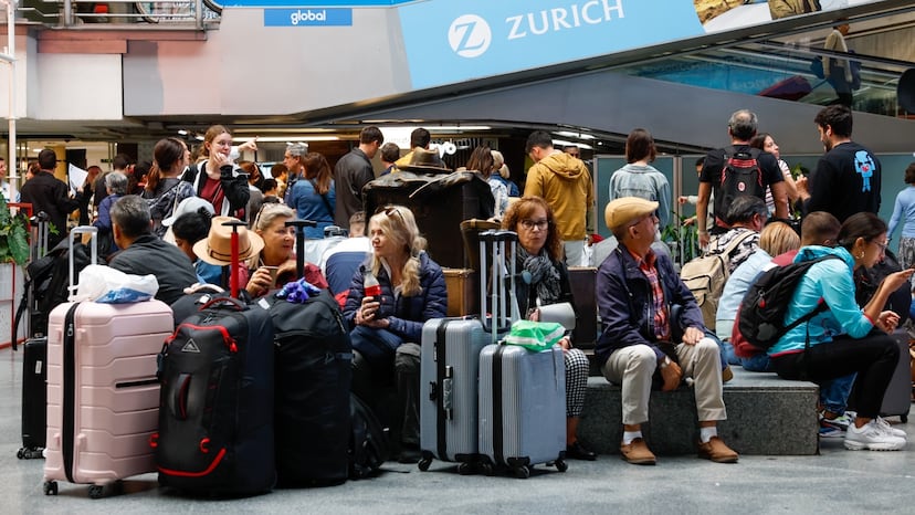 En Atocha hay un barullo que no cesa. Los viajeros hablan por teléfono o por vídeo llamada en todos los idiomas, charlan en las filas, comen un bocadillo o cabecean sentados sobre sus maletas en los pasillos. Algunos han tenido que pasar la noche en la estación o han llegado en la madrugada. Marta vino a Madrid el fin de semana y debía regresar el domingo en el tren de las 17.00 a Málaga. Trabaja en el mercado inmobiliario y este lunes tenía varias citas para tomar fotos a apartamentos. No llegó y aún duda si llegará. Anoche pagó 85 euros por una noche de hotel cerca a Atocha y madrugó este lunes para esperar desde las 7.00 para el tren de las 8.00 que le habían reprogramado. Pero el servicio no salió y, ahora, le han dado un nuevo boleto para el de las 15.55. "Soy autónoma y he perdido el día de trabajo. Ha sido todo un caos, las demoras solo aumentan", dice Marta, sentada en el suelo de un pasillo.