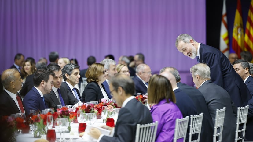 El alcalde Jaume Collboni ha apostado por “hacer Barcelona capital de la justicia tecnológica, humana, feminista, inclusiva y próspera”, ha alertado de las “responsabilidades y derechos” que plantean las tecnologías y ha celebrado el ecosistema del sector de la ciudad. El presidente de la Generalitat, Pere Aragonès, no ha participado en el saludo oficial al Rey, y se ha encontrado con Felipe VI y el resto de invitados en el coctel previo a la cena.