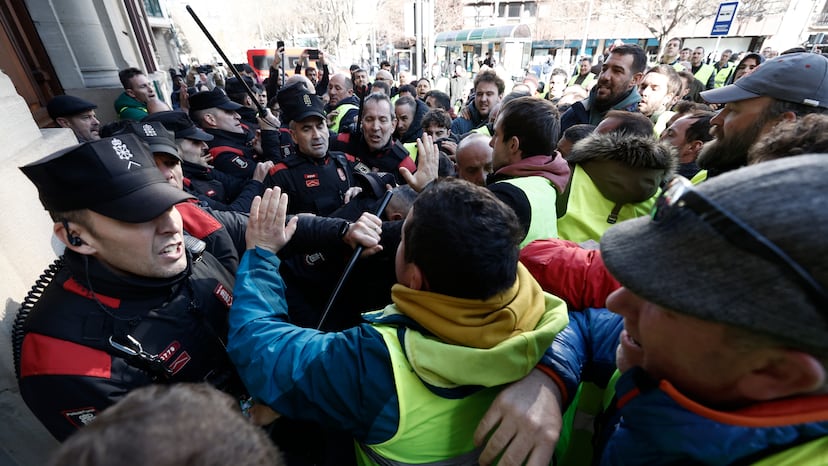 Al grito de “sinvergüenzas, ladrones” varias decenas de agricultores y ganaderos han intentado acceder por la fuerza a la sede del Parlamento de Navarra, en Pamplona, donde se debate el proyecto de Ley Foral de Presupuestos para 2024. Lo han hecho justo después de que los socios del Gobierno de Navarra (PSN, Geroa Bai y Contigo-Zurekin) y EH Bildu (socio presupuestario) rechazasen dar trámite a la enmienda ‘in voce’ presentada por UPN que pretendía “acercar” la fiscalidad de los agricultores de Navarra a la de Álava. La Policía Foral les ha dado el alto, pero varios han intentado colarse entre los agentes para acceder al salón de plenos. Se han vivido momentos de gran tensión en la entrada, donde se han agolpado manifestantes y policías. Estos últimos han tenido que hacer uso de las porras hasta lograr cerrar las puertas de la Cámara foral y dejar fuera a los agricultores y ganaderos. Cuando la situación se ha relajado, uno de los manifestantes se ha dirigido a los congregados y ha pedido disculpas tanto a las fuerzas del orden público “por intentar entrar y haber forcejeado con ellos”, como a la institución por haber intentado entrar sin autorización a la sede del legislativo. Este gesto no ha sido secundado por una parte de los manifestantes, que han defendido que no había que pedir perdón porque no había sido un intento de asalto. Parte de los afuera congregados han solicitado que se permitiera la entrada de cuatro representantes de la plataforma para que pudieran reunirse con otros tantos portavoces de los grupos parlamentarios, pero la mayoría de los partidos ha rechazado mantener esa reunión tras los altercados.