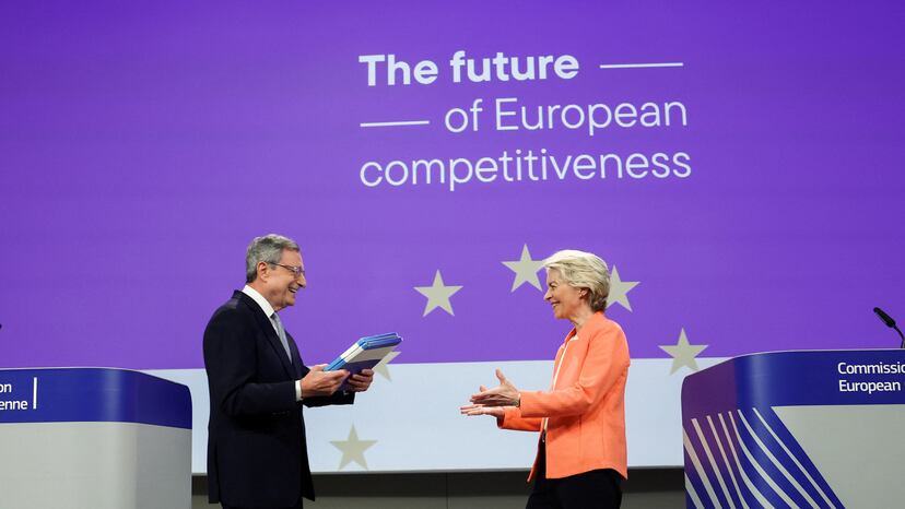Quien salvara el euro en 2012 con solo una frase —“Whatever it takes [cueste lo que cueste]”— como máxima autoridad monetaria de la zona, trufa su esperado informe con afirmaciones que ilustran hasta qué punto Europa ha perdido varios trenes en los últimos años: “Solo cuatro de las 50 mayores empresas tecnológicas del mundo son europeas”. “Cerca del 30% de los unicornios [empresas tecnológicas jóvenes que aumentan de valor hasta superar los 1.000 millones] acaban en Estados Unidos”, ha cuantificado. Para dar la vuelta a esta ralentización del crecimiento económico en la UE, de la que dice, “se ha hablado mucho desde hace años, pero no como se hace ahora”, empieza planteando una nueva estrategia industrial en un documento que ha presentado en la sede de la Comisión Europea en una sala de prensa muchísimo más concurrida de lo habitual, clara muestra de la expectación que ha levantado el trabajo del italiano y su equipo.