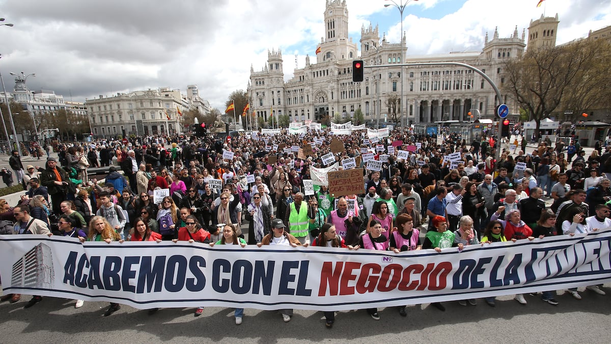 Miles de personas han vuelto a salir a la calle para manifestar su enfado y frustración por la crisis de vivienda que sufre España, que devora una porción altísima del poder adquisitivo y sabotea el proyecto vital de muchos, especialmente de los jóvenes. La protesta ha sido convocada este sábado por los sindicatos de inquilinos, que han llamado a la movilización en 39 ciudades. Reclaman que bajen los precios de los alquileres, que se generalicen los contratos indefinidos o el impulso de las Administraciones para recuperar las viviendas vacías, turísticas o en alquiler de temporada. También piden que se acabe la compra de pisos para especular o que se desarticulen los grupos de desokupación.