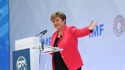 El FMI tuvo que tirar a la papelera sus pronósticos cuando Trump apareció con su cartelón el 2 de abril en la Rosaleda de la Casa Blanca. Sus economistas tuvieron que completar en apenas 10 días un nuevo ciclo de análisis que suele durar más de dos meses. Y, lo que es peor, sus cálculos se han vuelto a quedar desfasados. Las previsiones de referencia publicadas este martes en su informe Perspectivas de la economía mundial parten de los acontecimientos arancelarios hasta el 4 de abril, dejando fuera la tregua parcial de los mal llamados aranceles recíprocos, la escalada de la guerra comercial entre Estados Unidos y China y otros cuantos giros de guion. El Fondo ha elaborado escenarios alternativos, pero incluso esos dejan fuera los acontecimientos más recientes.