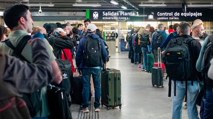 Sin embargo, todavía quedan pasajeros en los andenes que han tenido que vivir la pesadilla del aplazamiento de sus viajes por el apagón del lunes. María, Antonia y Juana debían salir hacia Francia hace dos días, con una parada en Barcelona, y este miércoles siguen en Madrid. “Tuvimos que venir nosotras ayer porque no sabíamos nada y fue cuando nos enteramos de que sí había un nuevo tren asignado”, cuenta indignada una de las mujeres con el billete del 28 de abril impreso y en la mano. “Nos dijeron que presentáramos el billete original de ese día”, añade poco antes de pasar por el control de equipaje. María y Juana, de Galicia, al menos tuvieron la suerte de poder hospedarse en la casa de Antonia, que sí es de Madrid, y no se vieron obligadas a pagar dos noches de hotel.