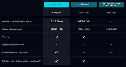 El amplio catálogo de series de HBOJuego de Tronos, True Detective o Succession, entre otras— desembarcó un año después que Netflix, en noviembre de 2016. Su tarifa inicial de 7,99 euros era, como ocurre en el caso de su principal competidor, superior al precio del plan que ofrece hoy con anuncios (6,99 euros). La plataforma, con un alcance estimado de nueve millones de españoles, lanzó su opción con publicidad en abril de 2025, al mismo tiempo que revisaba, por tercera vez, el precio de su opción libre de cortes y lo situaba en 10,99 euros.