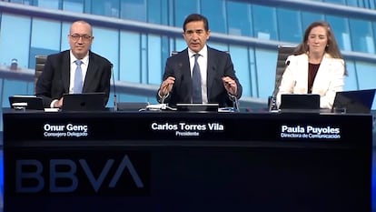 La cúpula del BBVA ha asistido a un funeral en la mañana de este viernes. El finado era la opa lanzada hace año y medio sobre el Sabadell, que toda la cúpula del banco ha tildado en repetidas ocasiones en la rueda de prensa como “una oportunidad perdida”. Y, sin autocrítica, ha afirmado que volverían a actuar del mismo modo, dado que era la información que tenían en cada momento. También han deseado éxito y suerte al Sabadell en su andadura en solitario, tal y como Torres ha contado que le transmitió al presidente del banco catalán, Josep Oliu, en una llamada de teléfono la pasada noche. Al más puro estilo de una noche electoral.