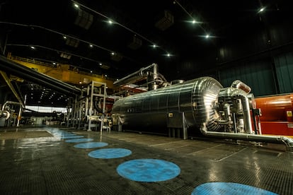 Si se cumple el calendario de cierre establecido en el Plan Nacional Integrado de Energía y Clima (PNIEC), esta será una de las últimas recargas de una planta para la que está fijado el cierre del reactor I en noviembre de 2027, y del II, en octubre de 2028. “Esta central no se parece en nada a la que era cuando yo entré en ella en los noventa, porque se ha ido invirtiendo en ella y actualizándola cada año. Puede seguir funcionando perfectamente”, defiende Jesús Camacho, jefe de turno de operación de la central, en el simulador de la sala de control. Rodeado de multitud de botones y pantallas explica que esta instalación vale unos 15.000 millones de euros y considera que podría alargar su vida útil hasta los 80 años, lo que supondría llegar hasta la década de 2060, al igual que hará su central nuclear gemela, que se encuentra en Virginia (Estados Unidos).