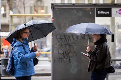 Dos personas con el móvil por el centro de Barcelona, el 19 de enero. GIANLUCA BATTISTA