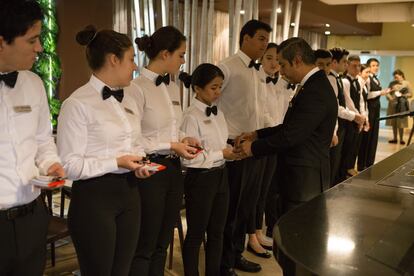 El estudiante, añade, ha de transformarse a nivel personal, “cambiar su forma de escuchar y de relacionarse con los demás, de percibir incluso la realidad que te rodea, algo que afecta a todos los ámbitos de tu vida”. Un objetivo que, en un entorno tan exclusivo (el precio del semestre se sitúa entre los 15.000 y 17.000 euros, aunque hay numerosas becas disponibles), no siempre es fácil. “A veces, es necesario enseñarles algo de humildad”, cuenta Hassan Dejeebet, manager y coordinador de clases prácticas en Food & Beverages (Comida y bebida). “Muchos llegan con 17 años, de familias acomodadas con sirvientes y todo, y no han trabajado un día en su vida. Pero también lo hago con ejecutivos de 35 o 40 años, a los que antes de nada les pido que se quiten la chaqueta para que vean que todos son iguales. Porque solo entonces, con un lienzo en blanco, puedes empezar a pintar”.