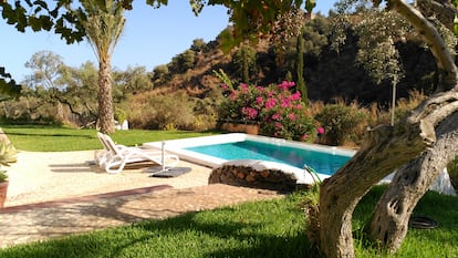 La casa principal es la antigua almazara y cuenta con dos dormitorios, dos baños, salón-comedor, cocina americana, terraza y porche. El establo, comunicado con la vivienda a través de un patio interior, es la segunda edificación, que dispone de dos dormitorios, dos baños, salón, terraza y porche. Es ideal como casa de invitados o alojamiento independiente. La finca acoge una plantación de olivos y frutales, una piscina de 21 metros cuadrados y pozo. Se halla a cuatro kilómetros de Frigiliana y a 7,5 de las playas de Nerja, cuentan en Rústicas Singulares, que vende la propiedad.