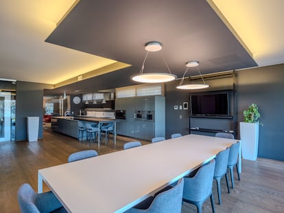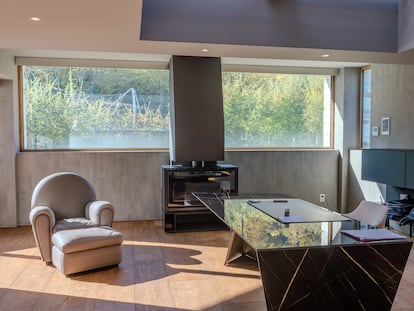 El área de ocio ocupa la parte baja: dispone de spa, piscina cubierta de 12 metros de largo, jacuzzi y sauna. No podía faltar una sala de cine totalmente insonorizada. Al aparcamiento, con capacidad para cinco vehículos, se accede por una plataforma situada justo después de la puerta de acceso a la propiedad, indican en Talamona Real Estate, afiliado de Christie’s International Real Estate.