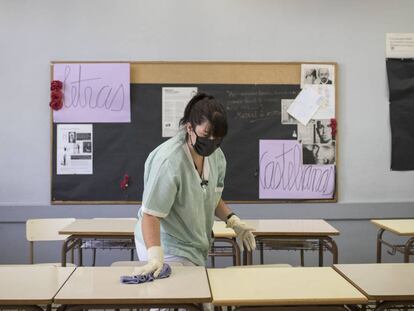 No comparte su opinión Miranda Pardo, profesora de Inglés en Valencia, para quien poder hablar en persona supone un gran salto pedagógico y resulta decisivo para varios de sus alumnos que no han podido seguir con las mínimas garantías la enseñanza a distancia. “Es cierto que estamos expuestos a unos riesgos, pero con las medidas de seguridad adecuadas y en grupos pequeños debe hacerse”, señala Pardo, que está a la espera de que su instituto reinicie las clases una vez que su comunidad entró el lunes en la fase 2. Lo mismo cree un coordinador autonómico de la selectividad, que pide que no se mencione su nombre: “Claro que es más difícil para un alumno asimilar los contenidos y aclarar dudas estudiando a distancia que si alguien se lo explica directamente. El que diga otra cosa no sabe lo que significa la docencia y no conoce las pruebas de la EBAU”.