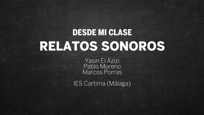 Para Yasin, Pablo y Marcos la cuarentena suena a aplauso, a despertador, a microondas y a ruidito de la videoconferencia. Así lo cuentan en uno de los retratos sonoros que han realizado los alumnos de 1º y 2º de ESO en el instituto Cartima, en Cartama, Málaga. Cuando llegó el confinamiento sus profesoras de Plástica y de Música les platearon un reto: contar un día de su cuarentena sin usar la voz, sólo con los sonidos y las imágenes de su encierro. Por el camino, Yasin y sus compañeros han aprendido con un proyecto cooperativo a escuchar el silencio, o más bien los sonidos de su intimidad, y sobre todo, a pensar. “Debería ser obligatorio este proyecto en la ESO. Aprendes a mirar y a escuchar, que normalmente no nos paramos a hacerlo, me ha parecido genial que los profesores nos animen a ello, porque ves el mundo de otra manera”, cuenta Yasin El Azizi, de 13 años.