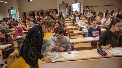 A primera hora, en la puerta de la facultad de Ciencias Químicas, la vicerrectora de Estudiantes de la Complutense, Rosa de la Fuente, explica que es comprensible que los estudiantes estén preocupados por el cambio de modelo, pero que al salir del examen no pensaran lo mismo. “No ha cambiado tanto realmente, simplemente hemos querido reducir la cantidad de preguntas que son de reproducción de contenido”, dice. A su lado, los estudiantes se amontonan para entrar en las aulas y comenzar el examen.