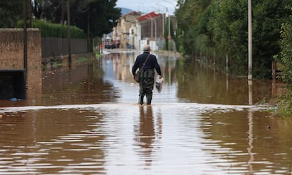 Hasta ese momento, unas 150 personas estaban participando en el dispositivo para encontrar al hombre desaparecido. Un tercio eran agentes de la Guardia Civil, peo también había agentes de Medio Ambiente, personal de Protección Civil y efectivos de la Policía Local, así como casi un centenar de personas voluntarias. Todas han partido esta mañana desde el puesto de mando instalado en la comandancia de Alhaurín el Grande, donde también había efectivos del Grupo de Emergencias Andalucía y Protección Civil. Se dividieron en ocho grupos de trabajo para rastrear el interior y los márgenes del río, que este lunes bajaba aún revuelto y con fuerza, aunque no tanta como durante la madrugada del domingo. La búsqueda ha sido compleja porque el cauce es, en su mayoría, un denso amasijo de cañas y barro. “Hemos hecho lo que hemos podido. La ciudadanía ha puesto todo lo que tenía de su parte”, contaba un Policía Local tras culminar su trabajo en una de las zonas más altas del río Fahala. A su lado, un grupo de voluntarios mostraba rostro serio al conocer que su vecino había sido encontrado muerto.