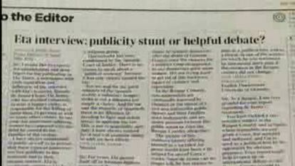 The Times publica esta carta bajo un título de debate: La entrevista de ETA: ¿publicidad o debate beneficioso?. Bajo este título, acompaña la carta de Aznar con otra que felicita a la publicación por dar voz al independentismo vasco.