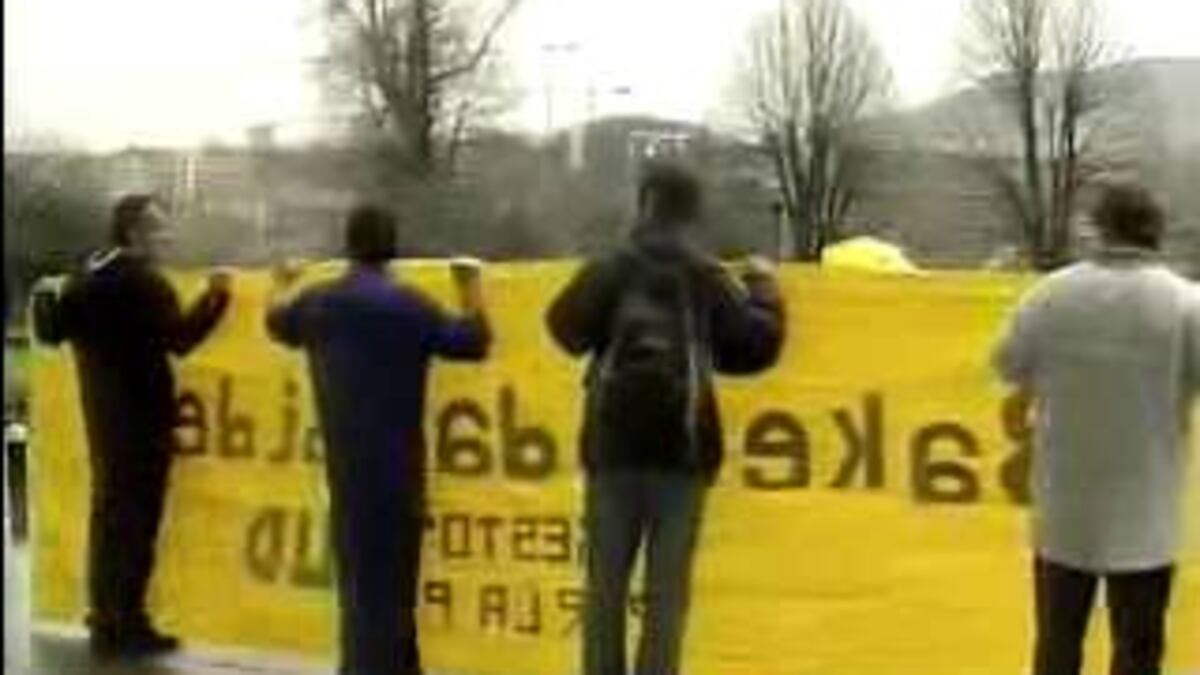 La coordinadora "Gesto por la Paz" se ha concentrado hoy en Bilbao para rechazar la violencia callejera y denunciar la muerte del anciano Ambrosio Fernández en Arrasate como consecuencia de la inhalación de humo en un ataque de la kale borroka.