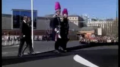 De riguroso luto, los Reyes han depositado una corona de laurel con una cinta de la bandera de España a los pies del monumento. Junto los monarcas y los Príncipes de Asturias, han asistido José Luis Rodríguez Zapatero y Mariano Rajoy, que se han visto las caras después de que el PP reuniera ayer a 337.000 personas en Madrid, según cálculos de este periódico, en protesta por la política antiterrorista del Ejecutivo. Sin intercambiar palabra, se han limitado a saludarse con un breve apretón de manos durante los saludos protocolarios al finalizar el acto. También han acudido Pedro Solbes, Miguel Ángel Moratinos, Magdalena Álvarez, Esperanza Aguirre, Alberto Ruiz-Gallardón, Manuel Marín, Javier Marín y Concepción Dancausa, entre otras personalidades.