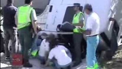 El camionero se tiró en marcha aproximadamente unos 50 metros antes de caer, lo que según el 112, le ha causado "solo rasguños de carácter leve" en una mano y ha hecho que "salvara milagrosamente la vida". Fue atendido por una UVI del SUMMA. La cabina del vehículo ha quedado completamente destrozada como consecuencia del impacto frontal que sufrió contra el talud. Los reflejos de Ángel no sólo le han salvado la vida a él: al dirigió el camión