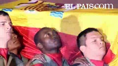 El funeral de Estado por los dos soldados españoles muertos en el atentado talibán en Afganistán se ha celebrado esta mañana con la presencia de los Reyes en la sede de la Brigada Paracaidista en la localidad madrileña de Paracuellos del Jarama. El presidente del Gobierno, José Luis Rodríguez Zapatero, las más altas autoridades del Estado y la cúpula militar han asistido a este homenaje a los paracaidistas Germán Pérez y Stanley Mera, fallecidos el pasado lunes junto a un intérprete afgano al explotar un artefacto al paso de un convoy.