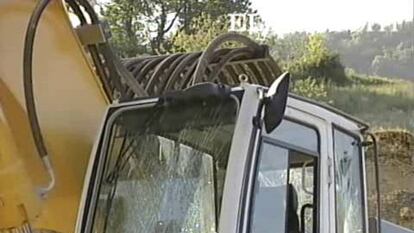 Dos excavadoras de la empresa Amenábar, que participa en las obras de la Y vasca, sufrieron daños ligeros tras ser atacadas con artefactos explosivos la pasada madrugada. Los ataques que las obras de la línea de alta velocidad llevan padeciendo en los últimos meses suelen ser atribuidos a la kale borroka, pero ésta es la primera vez que ETA asume la autoría de los ataques contra una empresa relacionada con las obras.