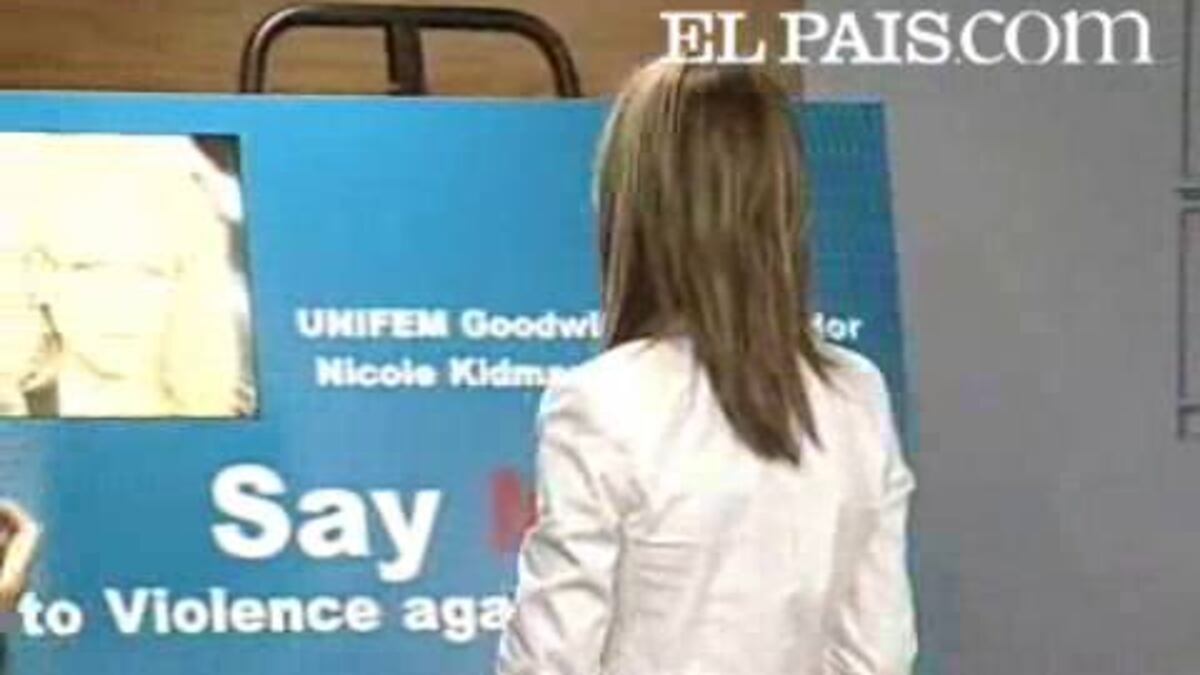 La ministra de Igualdad, Bibiana Aído, ha firmado hoy, en nombre del Gobierno, en una campaña organizada por la ONU contra la violencia sobre las mujeres.