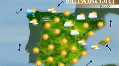 La jornada del miércoles ha estado marcada por la estabilidad en todo el país. Durante el día han aparecido algunas nubes de escasa importancia en las inmediaciones del Estrecho, en el área pirenaica y en el archipiélago canario, que se han alternado con claros. En el resto de España se han visto cielos azules y prácticamente despejados. El jueves comenzará con la entrada de un frente por el noroeste, que llevará chubascos a Galicia y al Cantábrico occidental. La nubosidad aumentará ligeramente en el resto del tercio superior, pero no se esperan lluvias. El sol y los cielos prácticamente despejados seguirán predominando en los demás puntos de la península. Habrá nuevas subidas de temperaturas en el interior y en el sur, de hasta 36 y 38 grados respectivamente.Vídeo: VNEWS