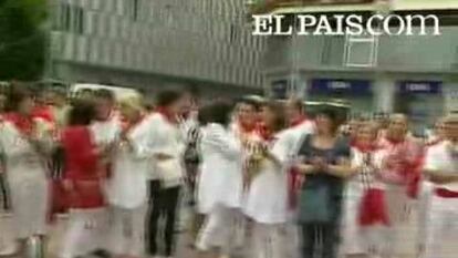 Decenas de pamploneses han interrumpido este mediodía la fiesta para condenar el asesinato de Nagore. La joven de 20 años era natural de Irún.