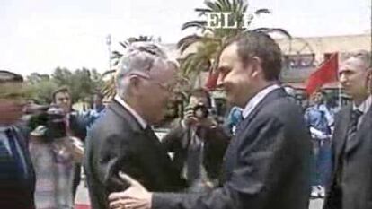El presidente del Gobierno, José Luis Rodríguez Zapatero, fue recibido, en su visita relámpago a Marruecos, por el primer ministro marroquí, Abbas El Fassi, en el aeropuerto de Uxda.