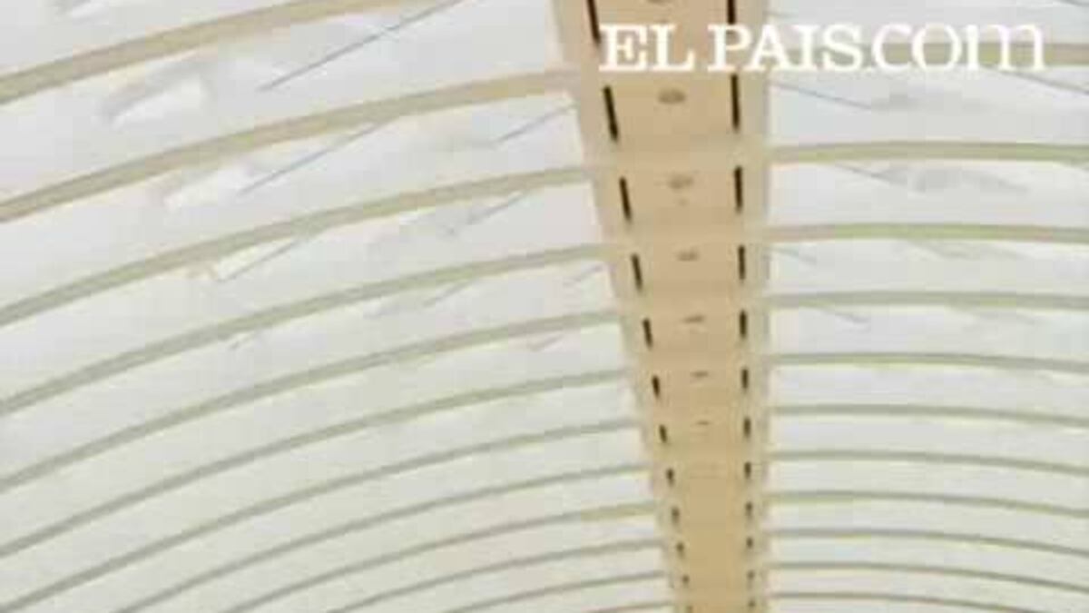 El magnífico Palau de les Arts de Valencia se lava la cara. Un grupo de alpinistas se ha puesto manos a la obra para limpiar sus cristaleras a más de cuarenta metros de altura.