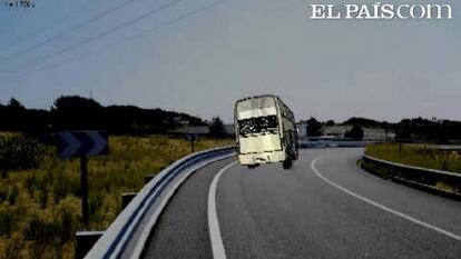 El lateral izquierdo del autocar impactó con una valla metálica a 67 kilómetros por hora, la rompió y continuó su recorrido fuera de la vía hasta chocar con otra valla, tras la cual hay undesnivel profundo. "Si hubiera roto esa valla, estaríamos hablando de más muertos", ha indicado Pla. A pesar de que la obligación es no sobrepasar los 40, los informes de la policía autonómica confirman que se puede circular hasta 64 kilómetros por hora sin riesgo de sufrir un accidente. El problema es que el conductor sobrepasó incluso ese margen de seguridad. El vehículo llevaba encendidas las luces de cruce. Ese factor hizo que el conductor, de 59 años, no apreciara la primera señal de velocidad, que ya indicaba una importante reducción.