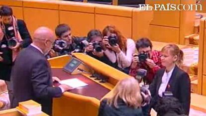 Pocas ocasiones va a tener Leire Pajín de recibir felicitaciones de PSC, BNG y PNV. Hoy las ha recibido sólo por sentarse en su sitio. Pajín ha tomado hoy posesión de su escaño como senadora, a las cuatro de la tarde, después de casi siete meses de bloqueo por parte del PP valenciano. La secretaria de Organización del PSOE ha prometido la Constitución y ha ocupado el escaño número 78 del hemiciclo del Senado.