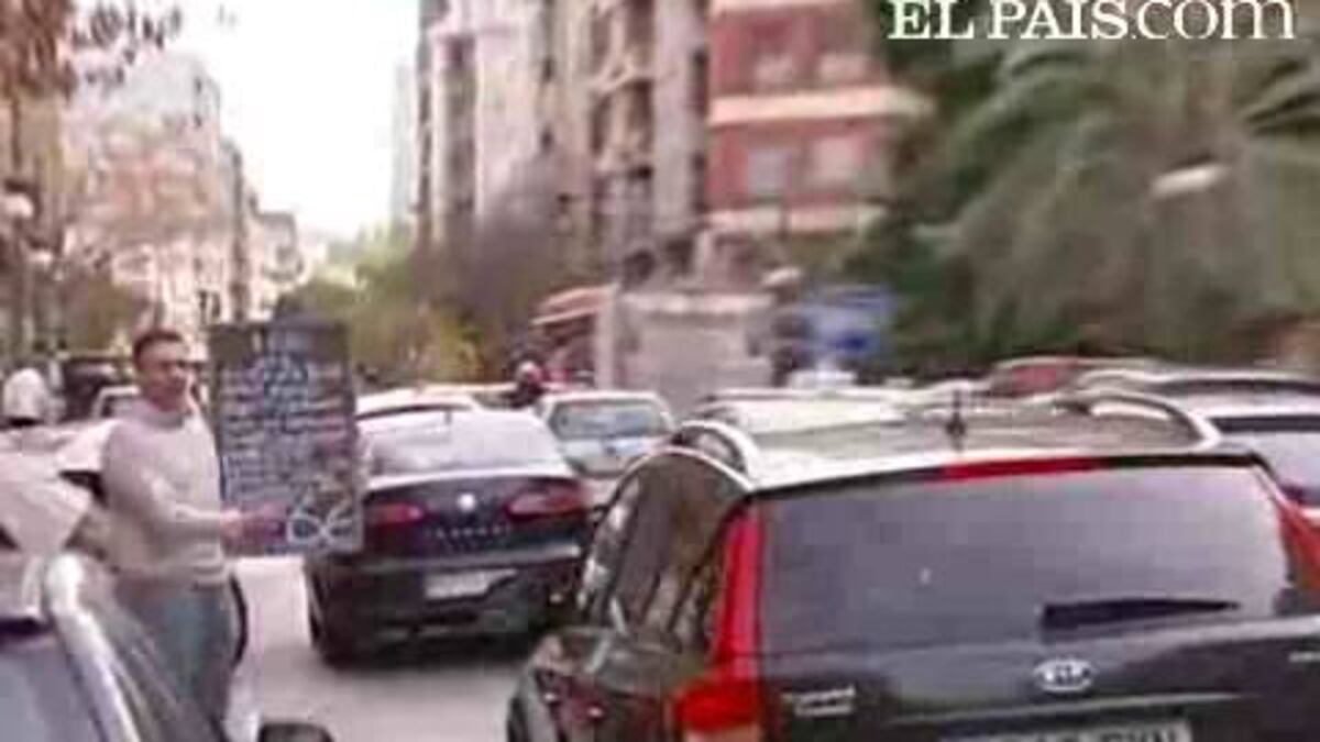 Fernando trabaja para una taberna Valenciana cantando los platos del día en plena calle