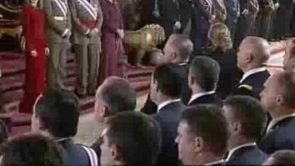 El Rey, acompañado por la Reina y los Príncipes de Asturias, ha llegado al Palacio Real en torno a las 12.00 del mediodía para presidir la celebración en la que han estado representadas las principales autoridades del Estado, los tres Ejércitos y la Guardia Civil. El presidente del Gobierno, José Luis Rodríguez Zapatero, ha recibido a los miembros de la Familia Real en la Plaza de la Armería, en la entrada del palacio, acompañado por el jefe del Estado Mayor de la Defensa, general José Julio Rodríguez, y los ministros de Defensa, Carme Chacón, e Interior, Alfredo Pérez Rubalcaba.