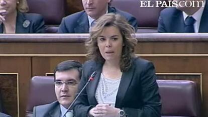 La portavoz popular, Soraya Sáenz de Santamaría, y la vicepresidenta segunda, María Teresa Fernández De la Vega, han protagonizado un ya habitual agrio enfrentamiento esta vez a cuenta de la reforma de las pensiones. "¿Si era tan necesario alargar la edad de jubilación por qué rectificaron? Se fue a Davos y le entró el pánico al oír lo que se dijo. Superado el síndrome de Davos ven conspiradores por todos los lados", ha señalado Sáenz de Santamaría, que ha acusado al Ejecutivo de "poco rigor". "La crisis tiene solución pero lo de su Gobierno no tiene remedio", ha añadido.