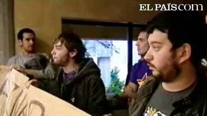 Minutos antes del mediodía, este grupo de manifestantes se ha trasladado a las inmediaciones del Aula Magna, lugar donde estaba convocada la charla para las 12.30, organizada por esta fundación y Nuevas Generaciones del PP. Los estudiantes portaban una pancarta que decía Aznar, criminal de guerra, mientras coreaban consignas como "Aznar, fascista, tú eres el terrorista", "Fuera los fascistas de la Universidad", "Aznar al talego como Vera y Barrionuevo", "No a la guerra" y "PSOE y PP la misma mierda es". Miembros de la seguridad privada y de la organización han cerrado el paso a los alumnos a la sala de conferencias, y se han quedado en los pasillos, con sus cánticos y vigilados por efectivos de seguridad.