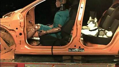 El estudio del club alemán ADAC muestra el peligro de sujetar al animal con un arnés de una sola hebilla