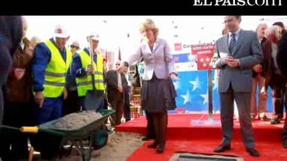 La presidenta de la CAM ha acudido hoy a poner la primera piedra de un centro de salud en el distrito de Latina, donde ha sido recibida por una decena de vecinos que protestaban porque no ha construido el hospital que prometió en los terrenos de la cárcel de Carabanchel.