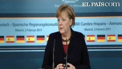 Las reformas llevadas a cabo por el Gobierno han recibido esta tarde el aval de la canciller alemana, Angela Merkel, de visita en España para asistir a la cumbre hispano-alemana e impulsar el pacto de competitividad europeo. "España ha hecho los deberes y va por muy buen camino", ha subrayado Merkel en una rueda de prensa conjunta con el presidente español, José Luis Rodríguez Zapatero.